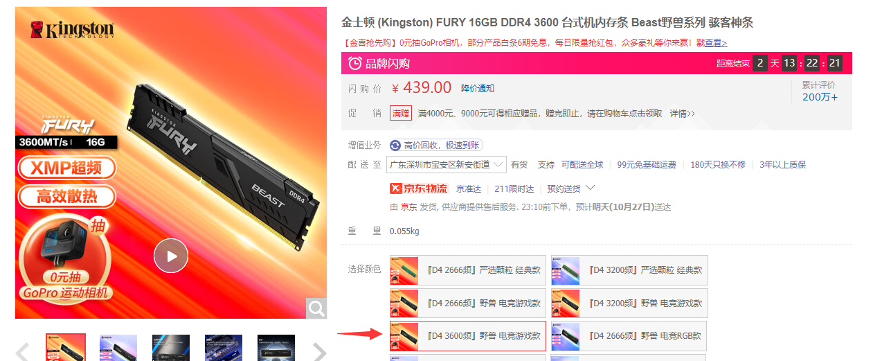 Kingstom 16GB DDR4 3600 频
