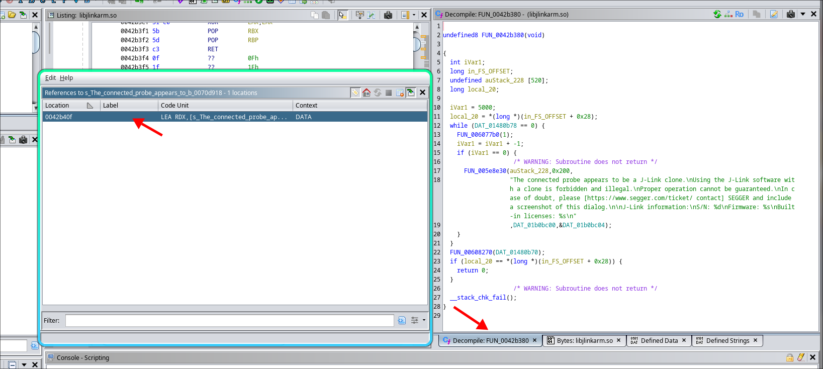 一共有两个库要修改, 一个是libjlinkarm.so 另一个是libjlinkarm_x86.so, 修改的方法都是一样的, 这里以 libjlinkarm.so 为例