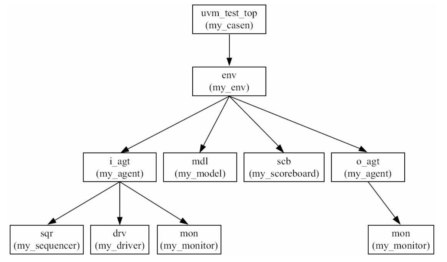 1 2 3 4 5 6class scoreboard extends uvm_scoreboard; uvm_analysis_imp#(my_transaction, scoreboard) scb_imp; task write(my_transaction tr); //do something on tr endtask endclass之后在env中可以使用connect连接。由于monitor与scoreboard在UVM树中并不是平等的兄妹关系,其中间还间隔了o_agt,所以这里有三种连接方式,
